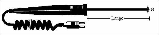 Der Meßwiderstand liegt isoliert in der Spitze eines Edelstahl-Schutzrohres. Je nach Anwendung wird Länge und Durchmesser sinnvoll gewählt. |