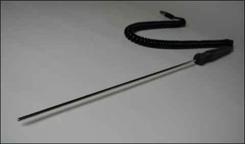Mantel-Widerstandsthermometer mit Handgriff und 4-Leiter-PVC-Anschlussleitung (im Standard ohne Stecker - s. "Sonstiges"). |
