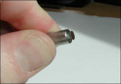 Die Fühlerspitze besteht im wesentlichen aus einem Kupferplättchen, welches als Wärmeüberträger an die Thermoleitung angeschweißt ist.Zum mechanischen Schutz der Sensorspitze ist Diese mit einer verschiebbaren Hülse versehen, die sich beim Aufsetzen des Fühlers auf die Meßfläche nach hinten bewegt, um den Kontakt des Kupferplättchens und damit die thermische Verbindung mit der Meßfläche zu ermöglichen.Die Fühlerspitze hat einen Durchmesser von nur 6 mm, wodurch sich der Sensor speziell zur Messung an kleinen Bauteilen eignet. |