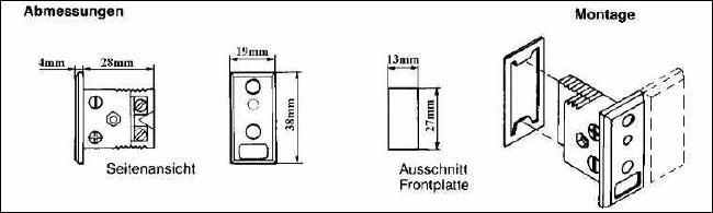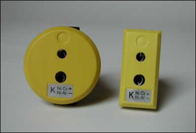 Einbaubuchsen aus temperaturfestem Spezialkunststoff in rechteckiger und runder Bauform für verschiedenste Thermopaare.