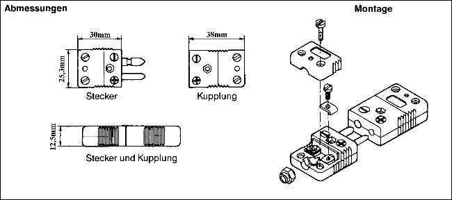 Die Kontaktwerkstoffe sind aus Thermomaterial entsprechend der verwendeten Sensoren. Die Bauform ist ein Industriestandard und findet bei den gängigsten Meßgeräten Verwendung.