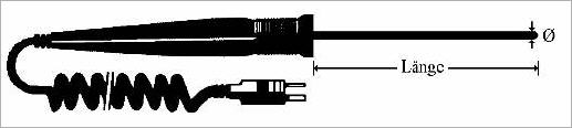 Der Meßwiderstand liegt isoliert in der Spitze eines Edelstahl-Schutzrohres. Je nach Anwendung wird Länge und Durchmesser sinnvoll gewählt.