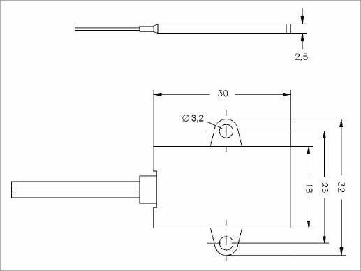 Oberflächenfühler mit 2 m direkt angeschlossener 3-Leiter-Silikonanschlußleitung (offene Enden mit Kabelschuhen).