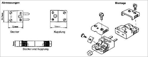 Die Kontaktwerkstoffe sind aus Thermomaterial entsprechend der verwendeten Sensoren. Die Bauform ist ein Industriestandard und findet bei den gängigsten Meßgeräten Verwendung.