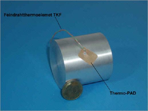 Die Thermo-PADs werden wie ein Aufkleber vom Trägermaterial gelöst, der Feindrahtfühler durch das zur Durchführung vorgesehene Loch gesteckt, und das PAD mit Fühler auf die Meßstelle geklebt. Die Klebefläche sollte sauber, fettfrei und trocken sein. Nach Gebrauch können die Pads problemlos praktisch ohne Spuren zu hinterlassen wieder abgezogen werden. Das Entfernen nach erfolgter Anwendung geschieht ohne jegliche Beschädigung des Meßobjektes.